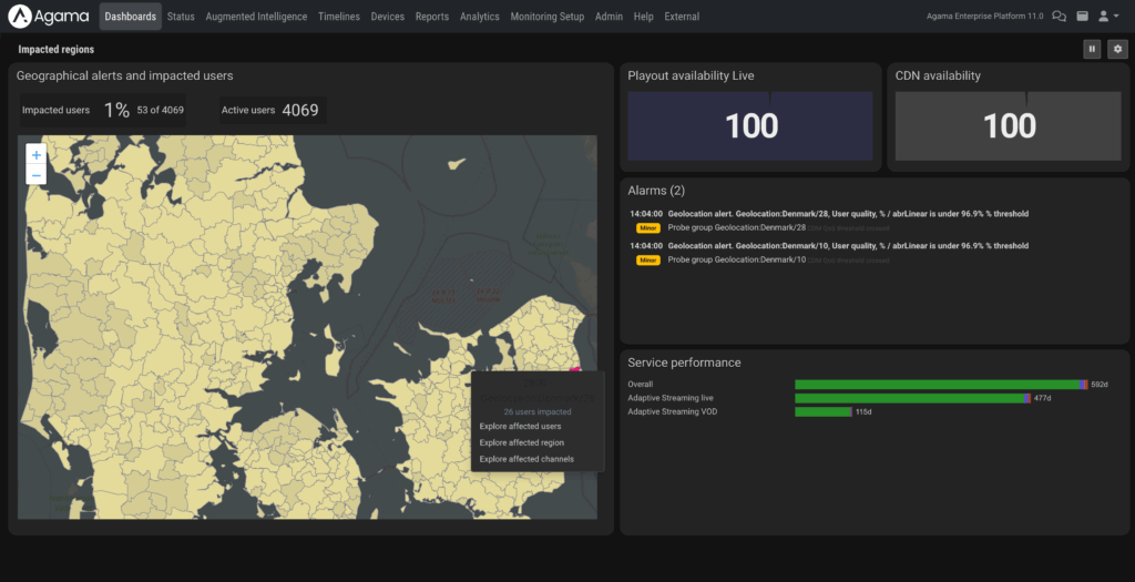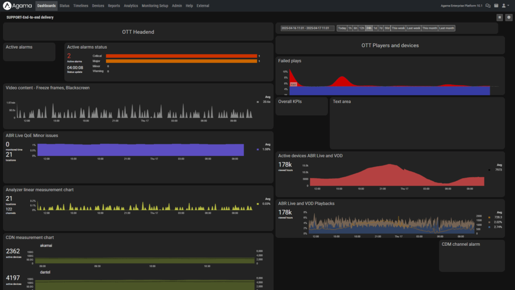 Operations teams manage a complex ecosystem of playout systems, delivery networks, and customer devices, all in real time. Agama’s E2E video observability and analytics platform gives teams unified visibility across the entire video delivery chain, from headend to user device, so everyone can see performance, quality, and experience in one place and work together more effectively.