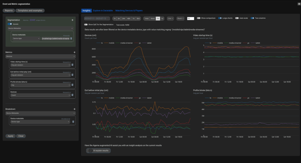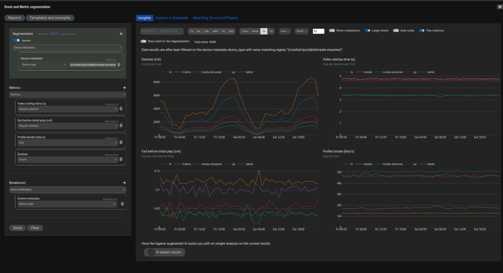 Not every feature works the same way on every device. With product analytics, you can see which features drive engagement on mobile, smart TV, or web, and connect adoption to QoE metrics to distinguish UX/design issues from delivery challenges. This clarity helps prioritize platform-specific improvements, which will have the strongest impact on usage.